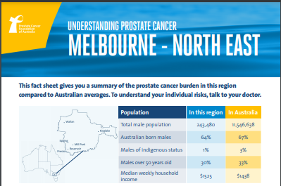 This PCFA fact sheet provides a population level summary of the prostate cancer burden in Melbourne’s North East compared to Australian averages.