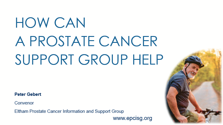 In this presentation, our convener Peter provides some basic information about prostate cancer, and explains how a Prostate Cancer Information & Support Group can help.